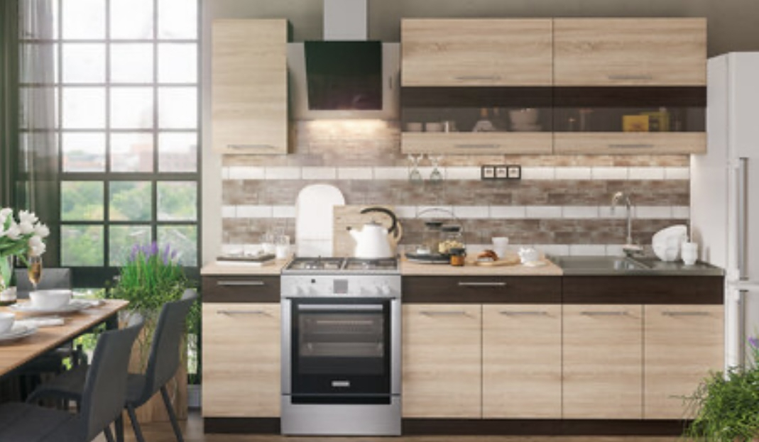 Daca spatiul tau se rezuma la 200cm si esti un iubitor al culorii WENGE&SONOMA, noi iti recomandam mobila de bucatarie Amelia!!!
