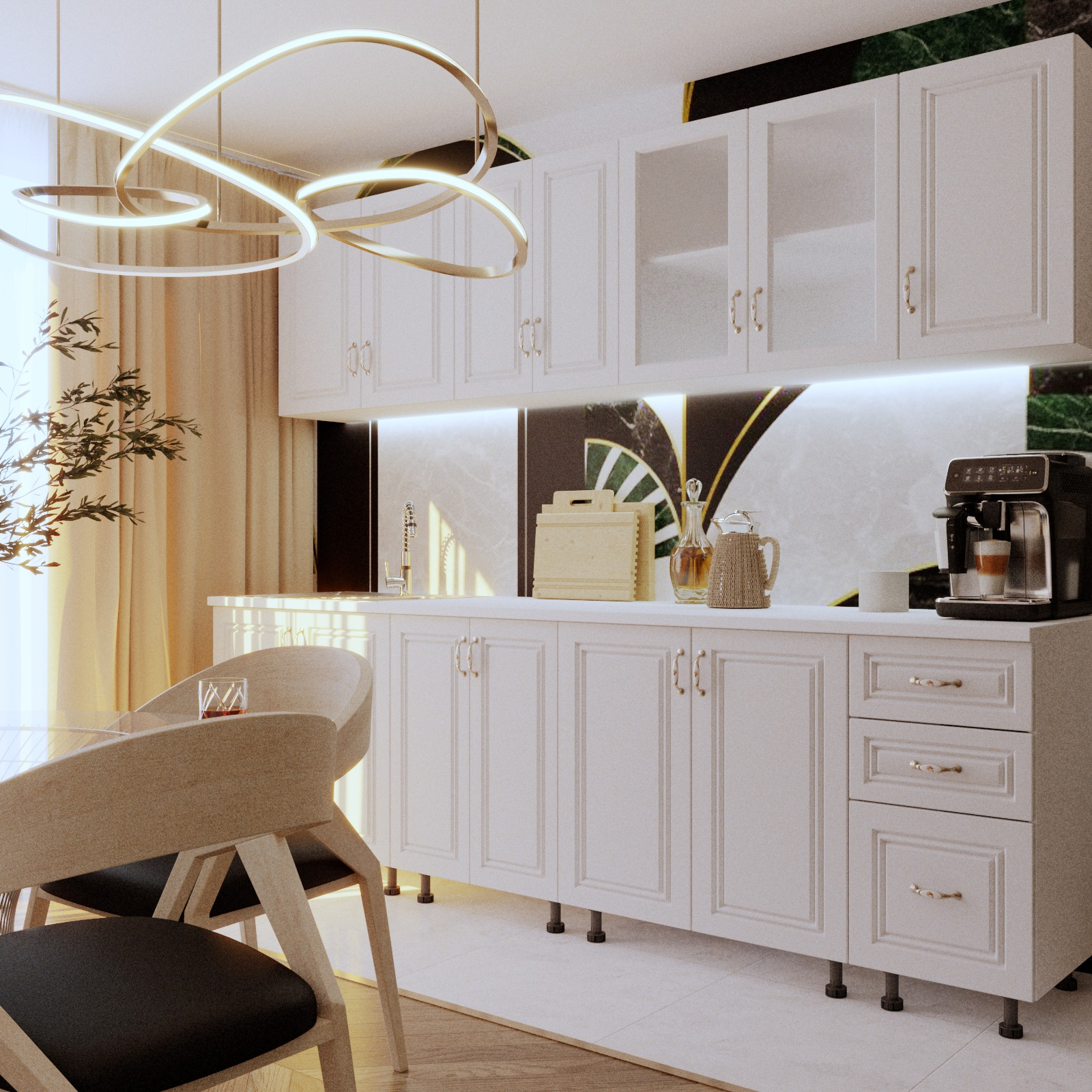 Daca spatiul tau se rezuma la 260cm si esti un iubitor al culorii alb mat, noi iti recomandam mobila de bucatarie Liusa!