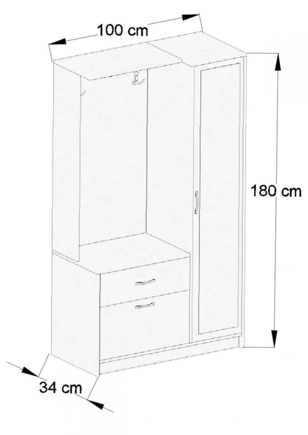 Dimensiuni:100 x 180  x 34  (Lxhxl)