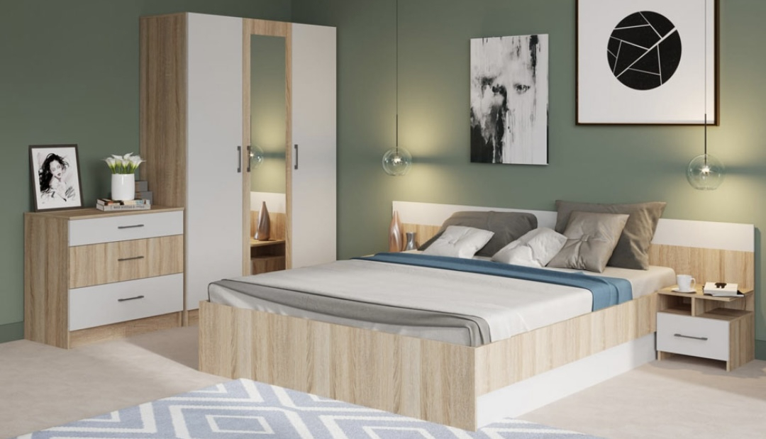 Dormitor Lesi Sonoma&Alb 3 Usi