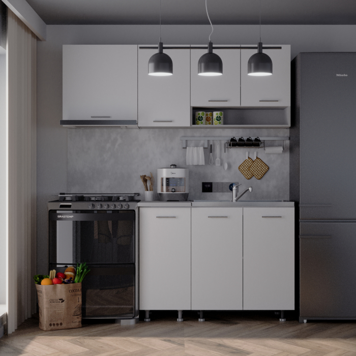 Daca spatiul tau se rezuma la 180cm si esti un iubitor al culorii Alb, noi iti recomandam mobila de bucatarie Sena!