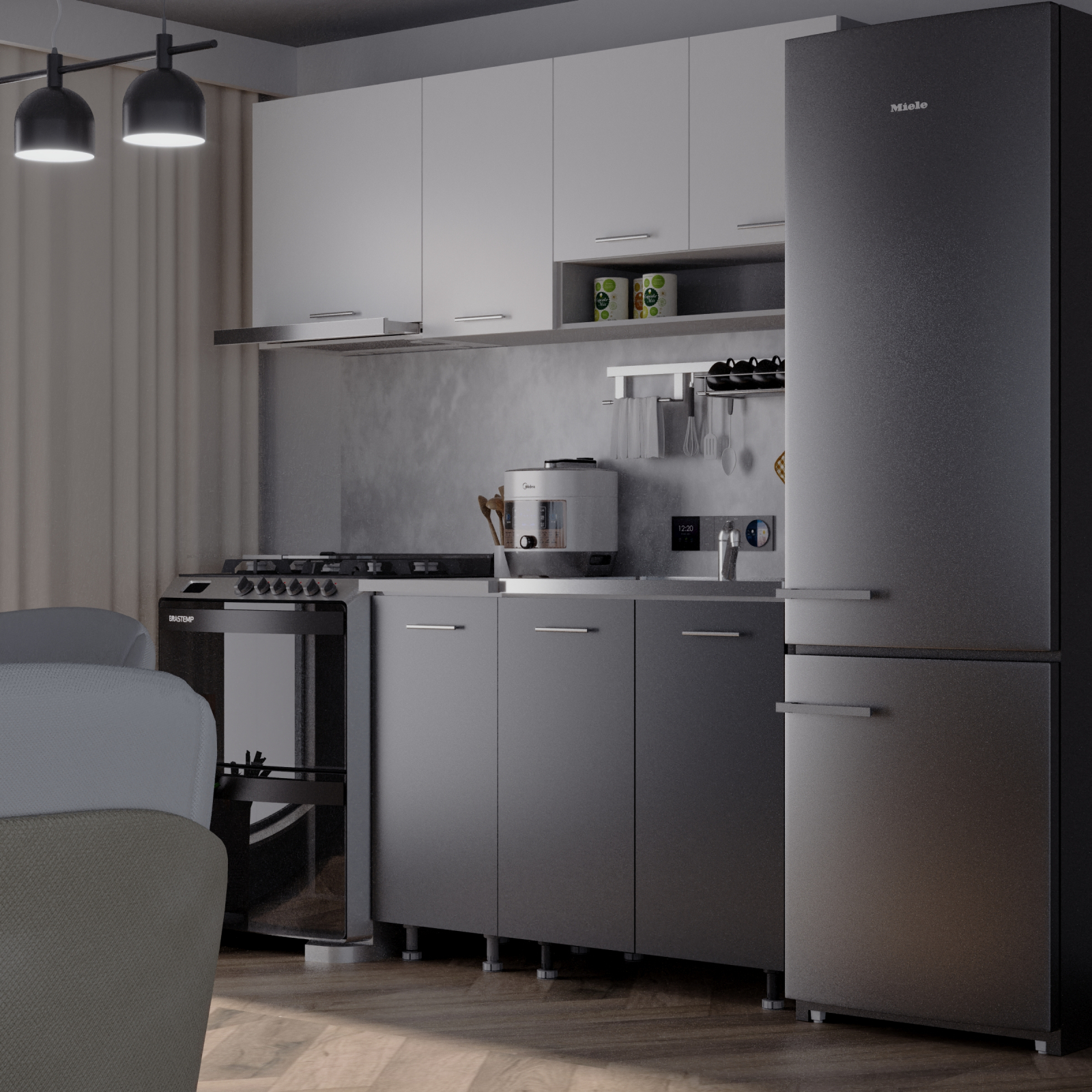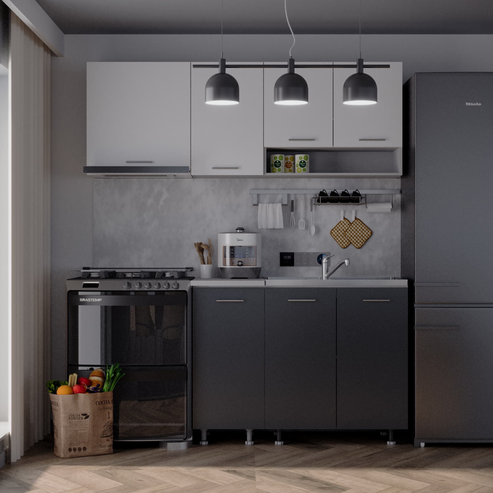 Daca spatiul tau se rezuma la 180cm si esti un iubitor al culorii Antracit&Alb, noi iti recomandam mobila de bucatarie Sena!