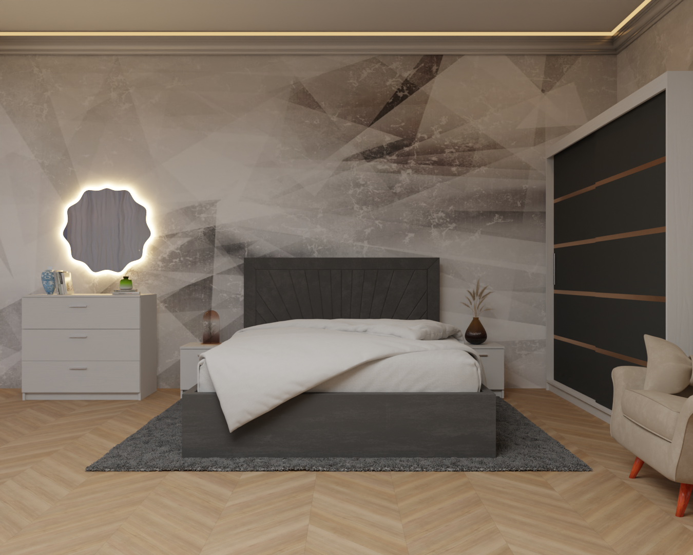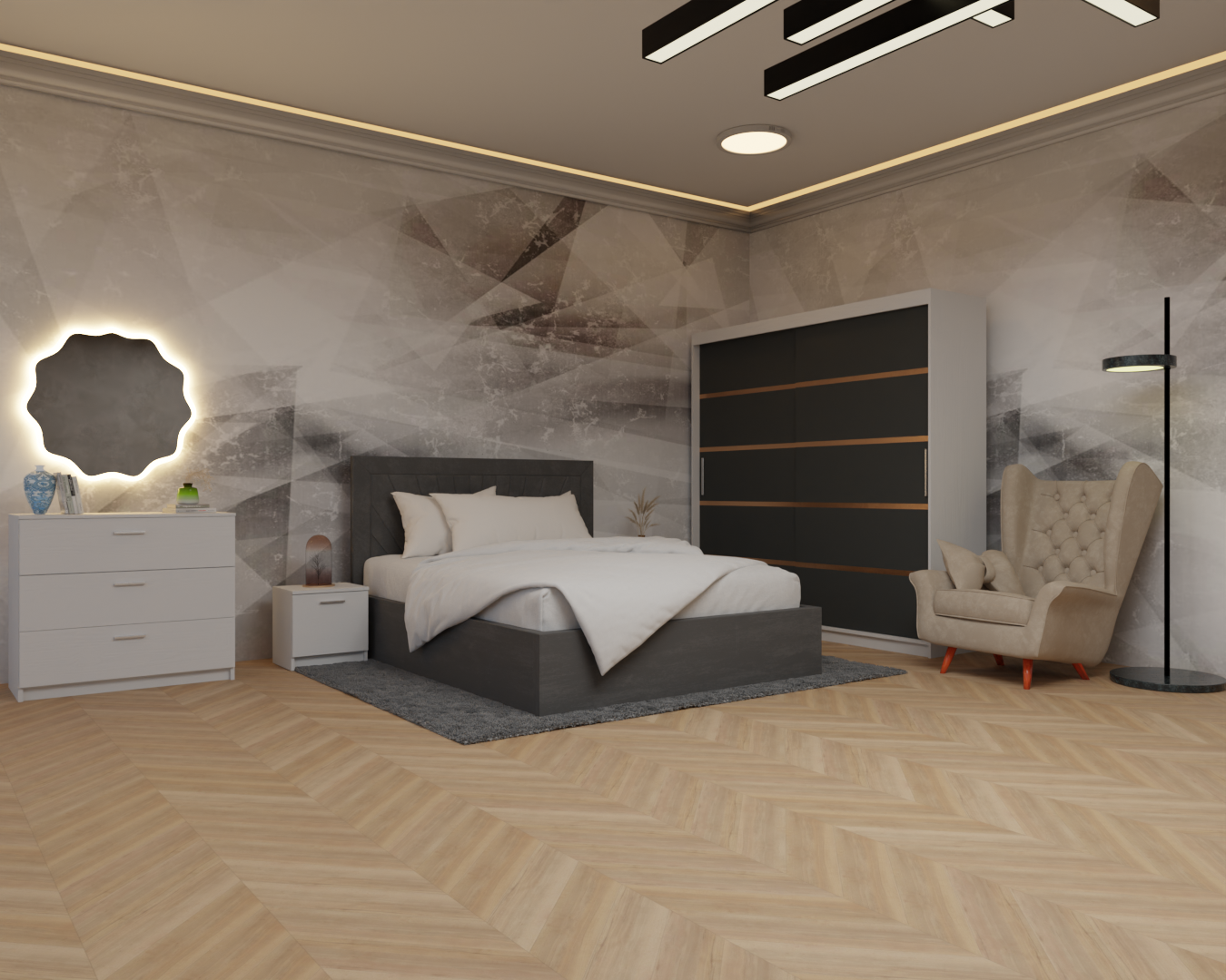 Dormitor: Lotus Pat Tapitat Dressing 200x200 Alb&Antracit 2 Usi