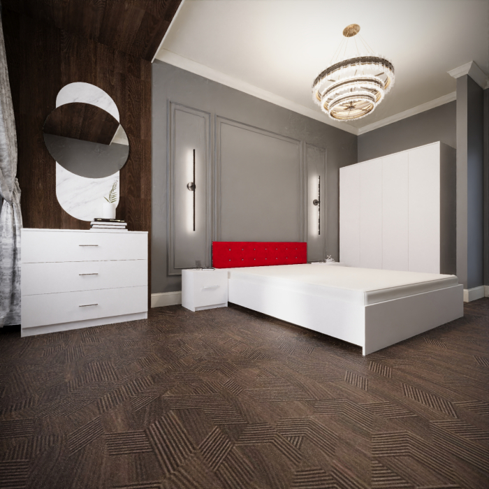 Dormitor Nemira Alb&Rosu Tapitat 4 Usi
