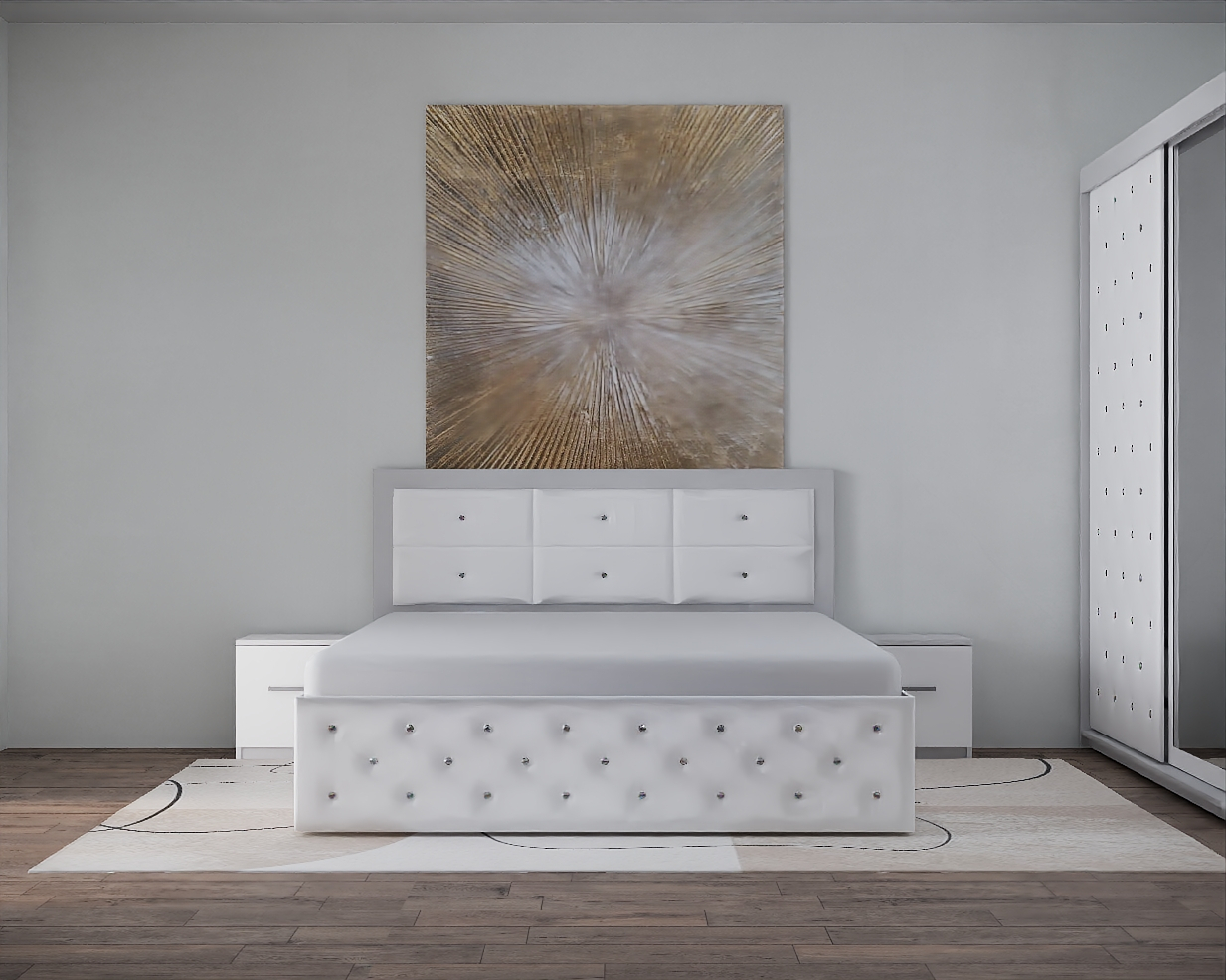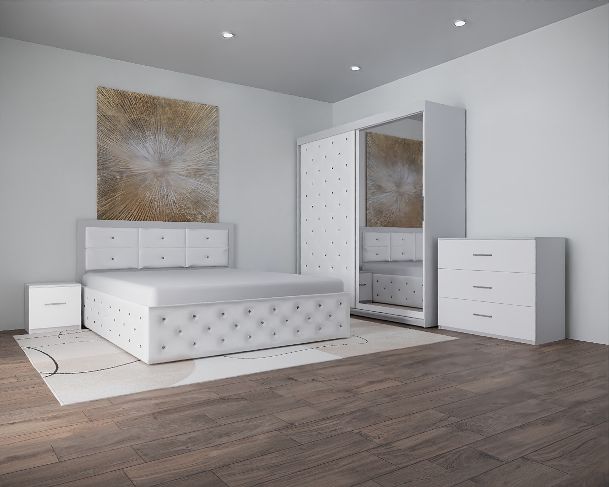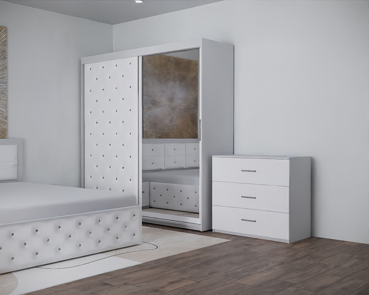 Dormitor Nemira New Alb Tapitat 2 Usi cu Oglinda