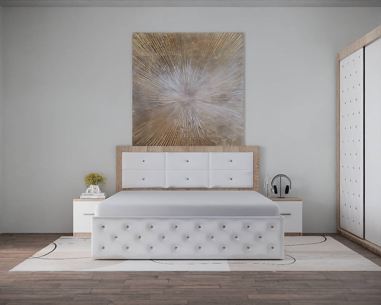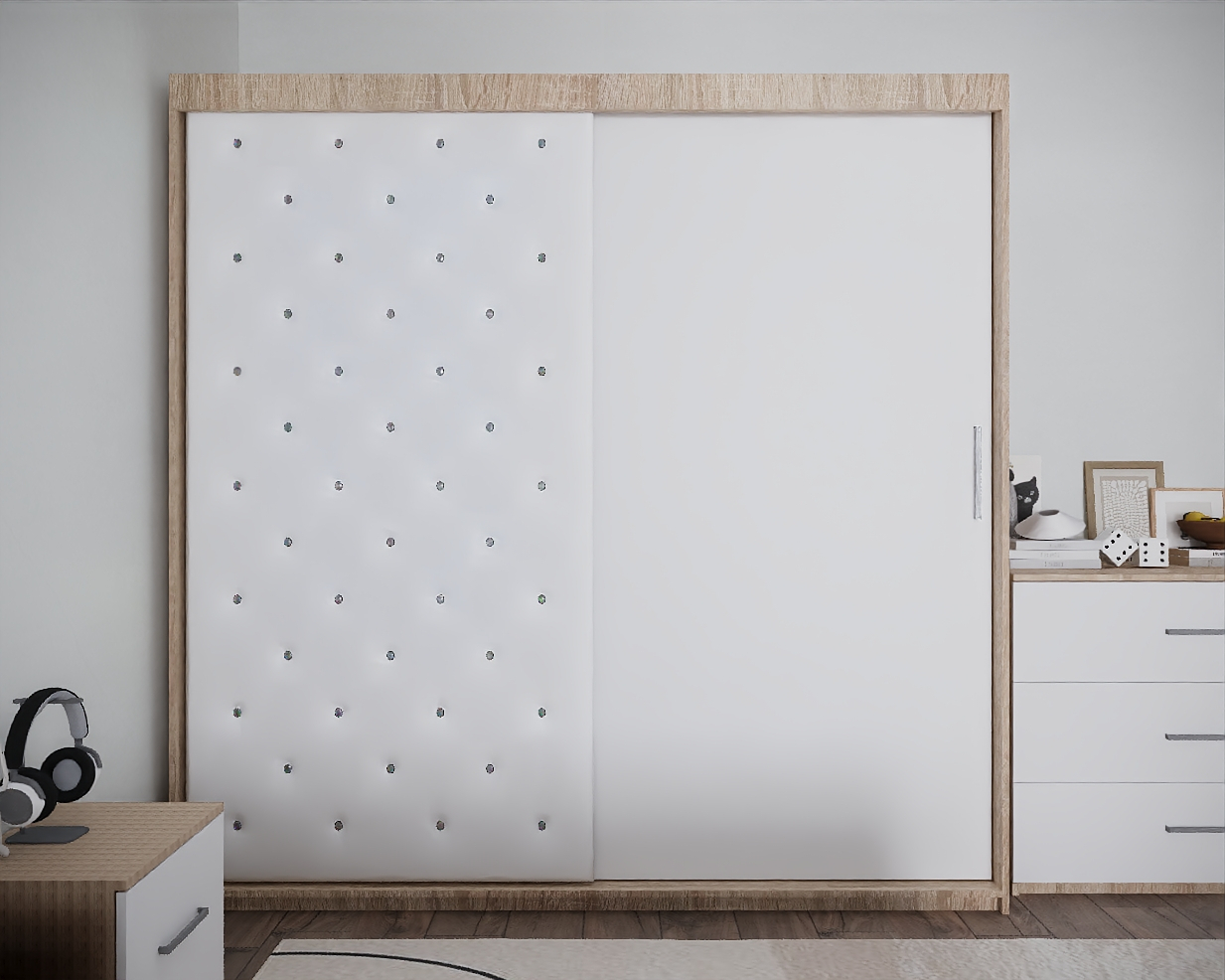 Dormitor: Nemira New Tapitat Sonoma&Alb 2 usi