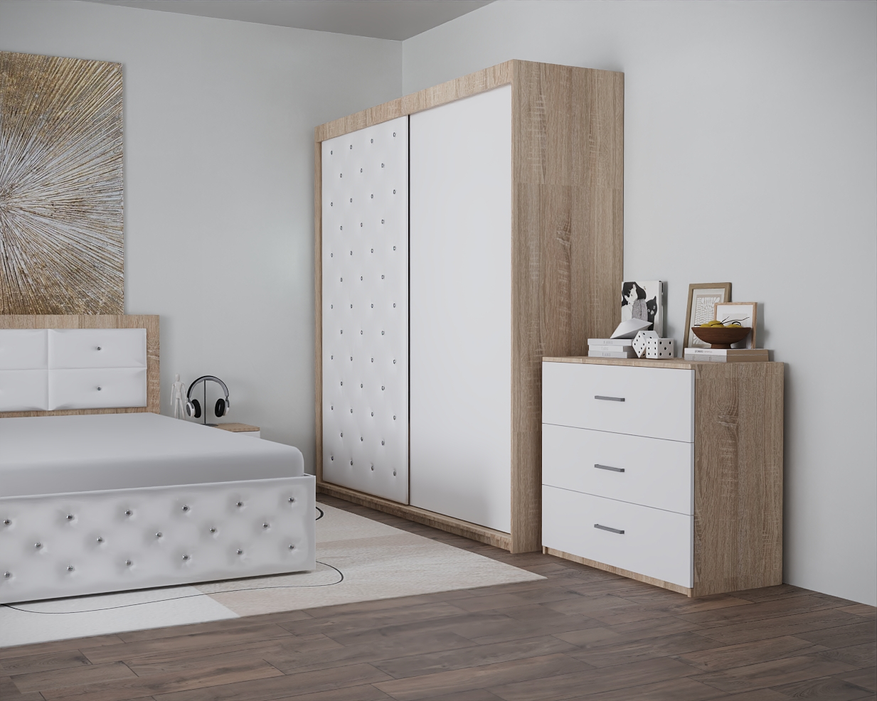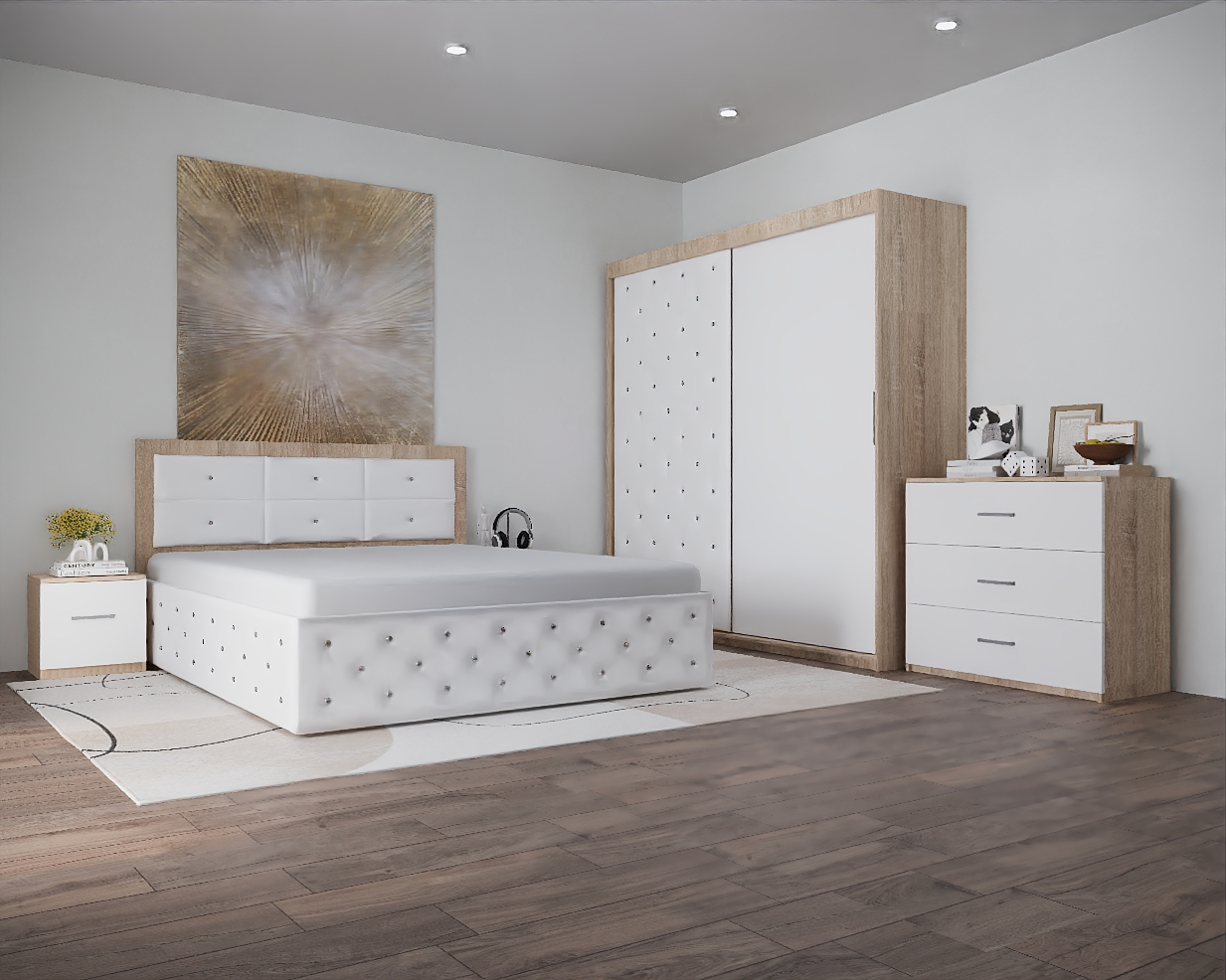 Dormitor Nemira New Sonoma&Alb Tapitat 2 Usi