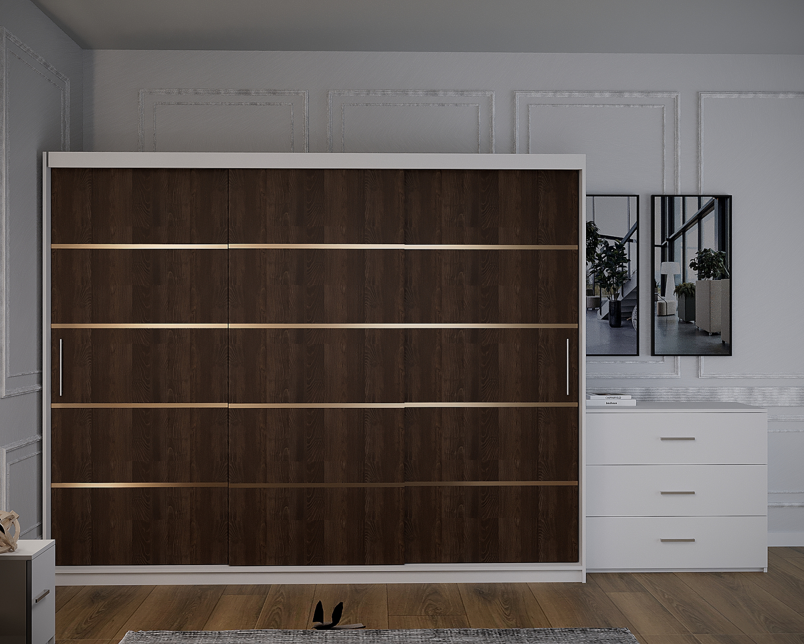 Dormitor Vista Tapitat Alb&Wenge Dressing 3 usi 250x200