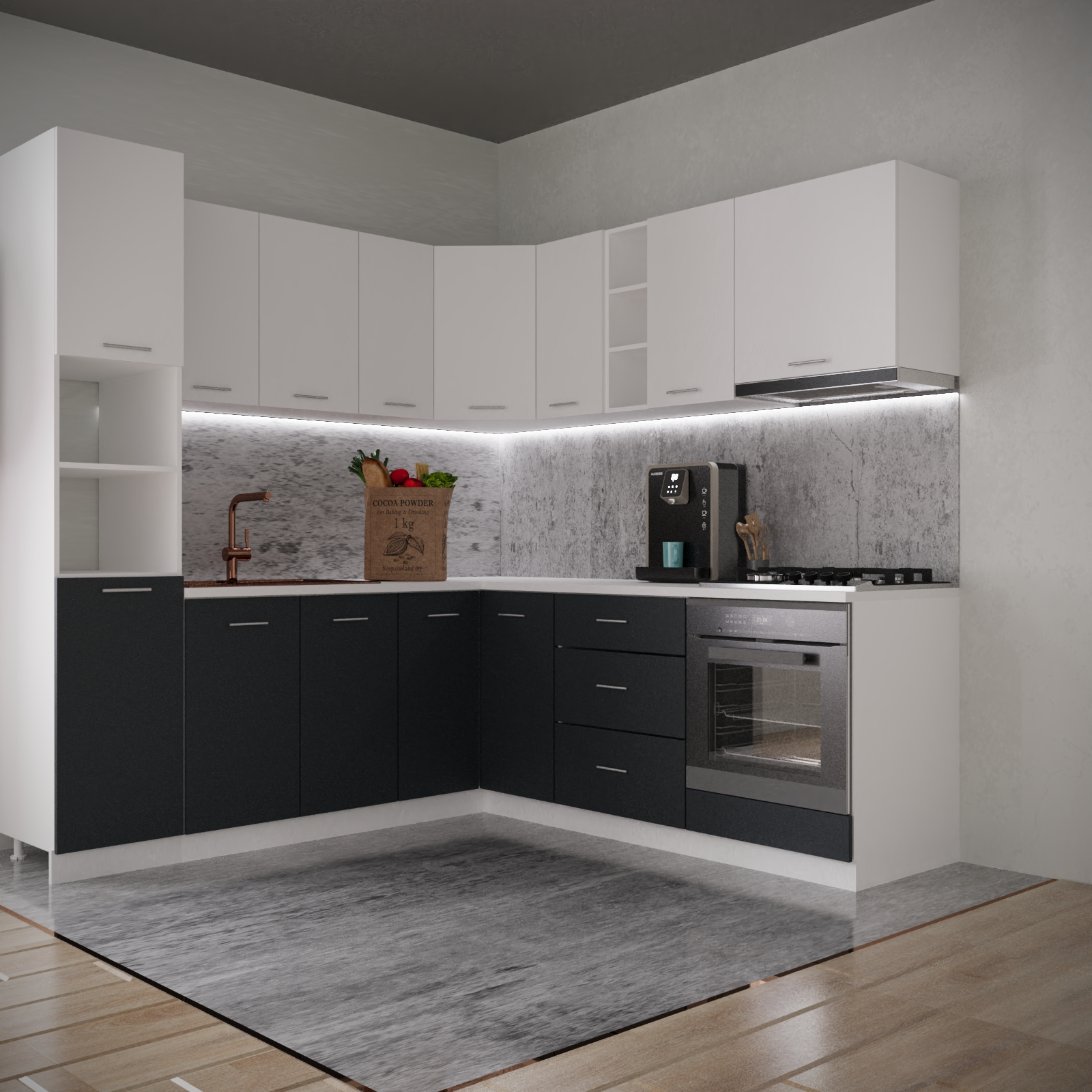 Bucatarie Sena Colt 220 x 220 cm Alb&Antracit